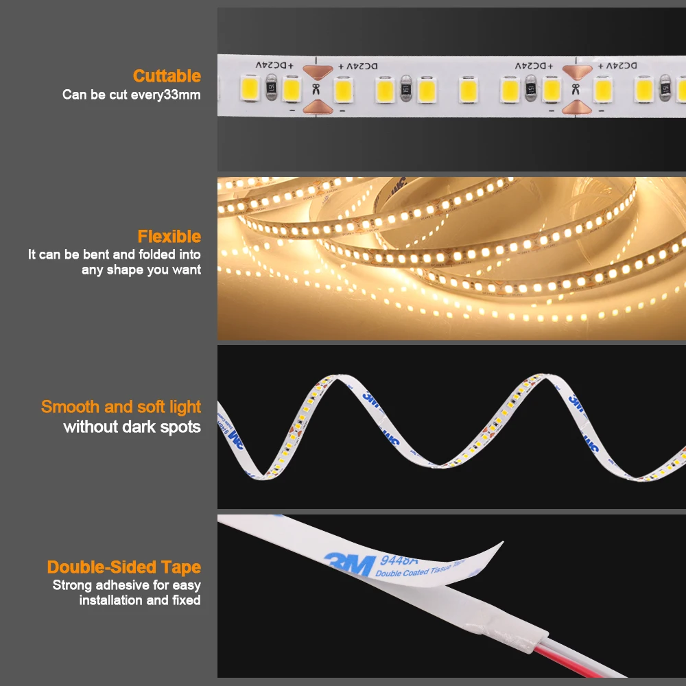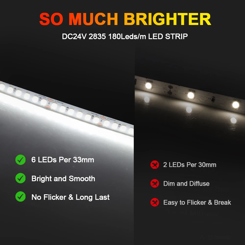 • Every 3-LEDS(12V), 6-LEDS(24V) cuttable without damaging the rest strips, according to your requirement