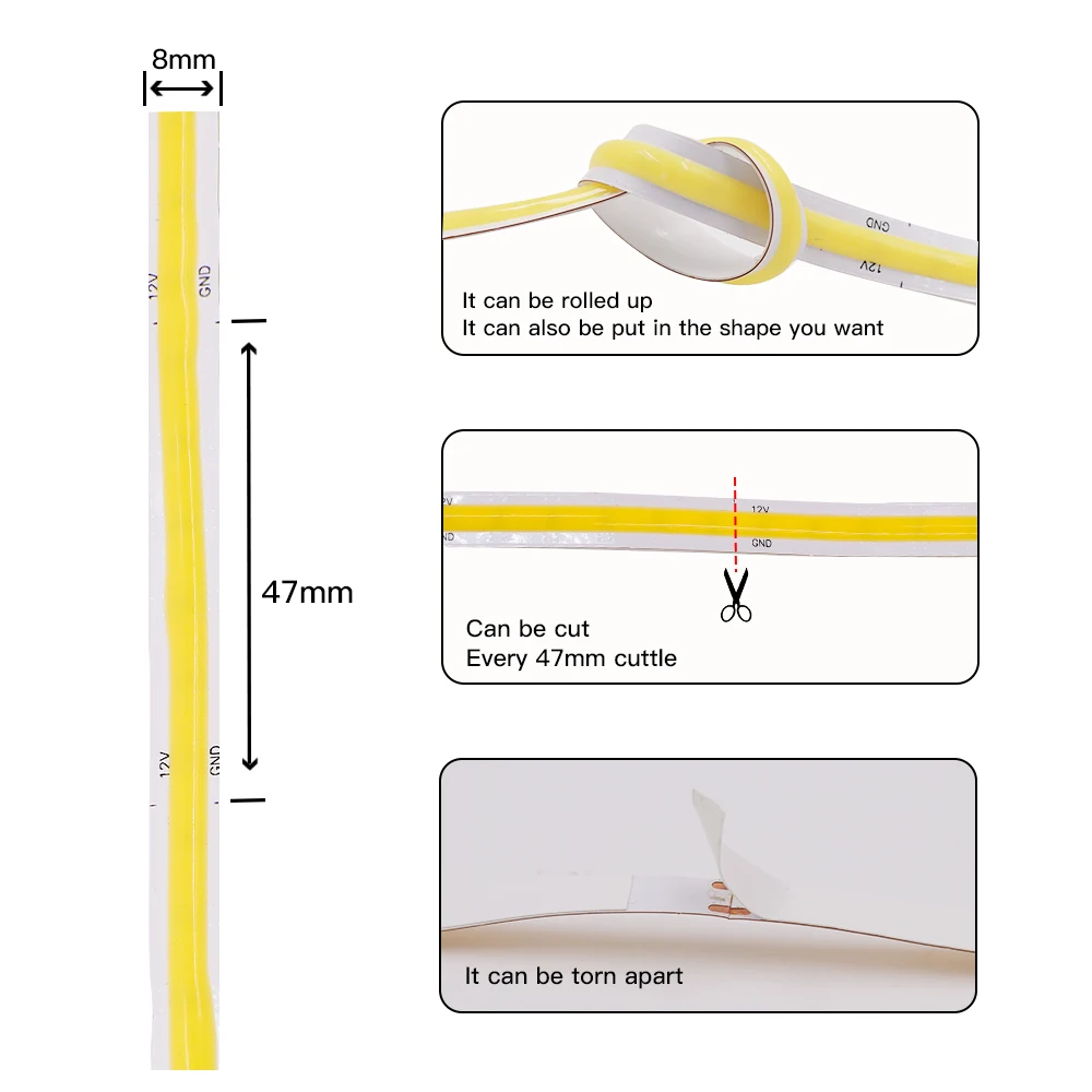 -Cutting Length: 320Leds/m-every 50mm, 384Leds/m-every 42mm, 528Leds/m-every 45mm