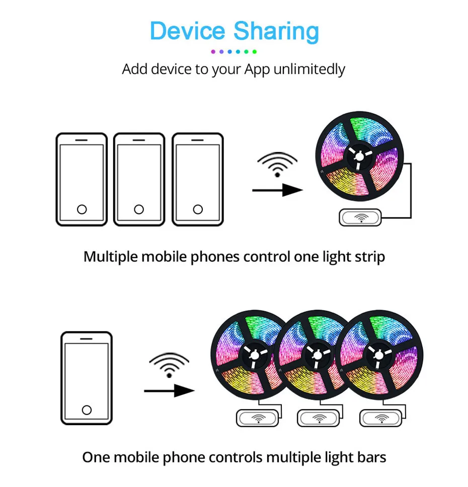 【WiFi Control via App】The app “Smart Life” can control the LED strip lights to achieve the effect that all strip light can achieve (turn on/off/change color and brightness).With the mobile app, you can select all colors.