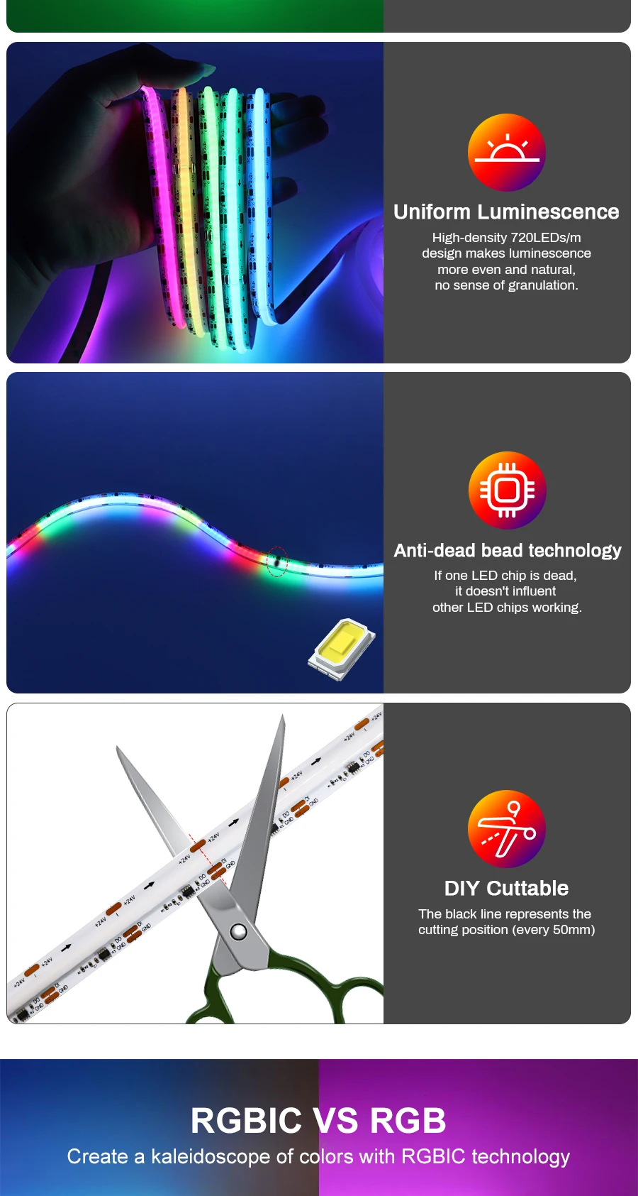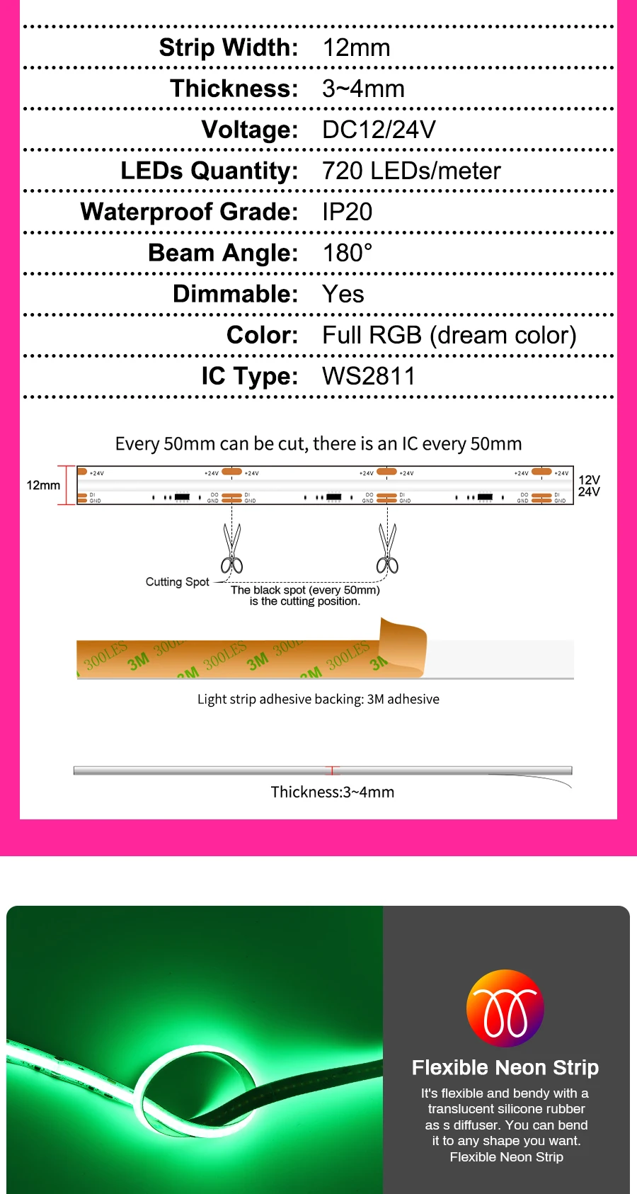 Product name: Dream color led COB light strips,Full color led COB light strips,Addressable led COB light strips