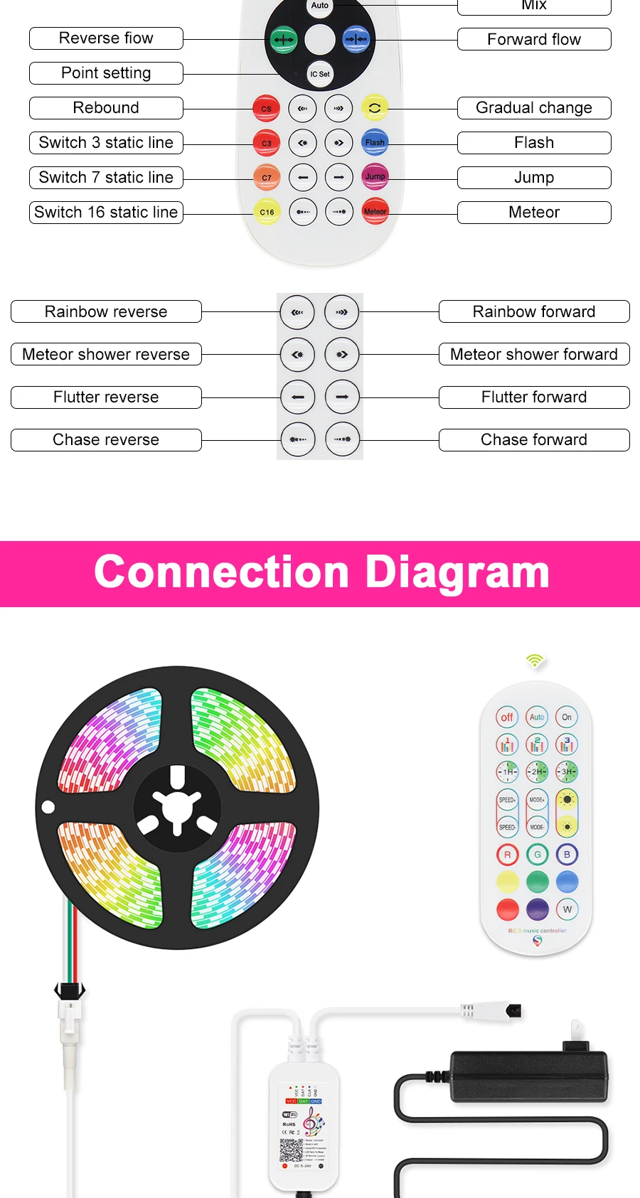 Luminous color: Dream color changing/Full color RGB/Addressable